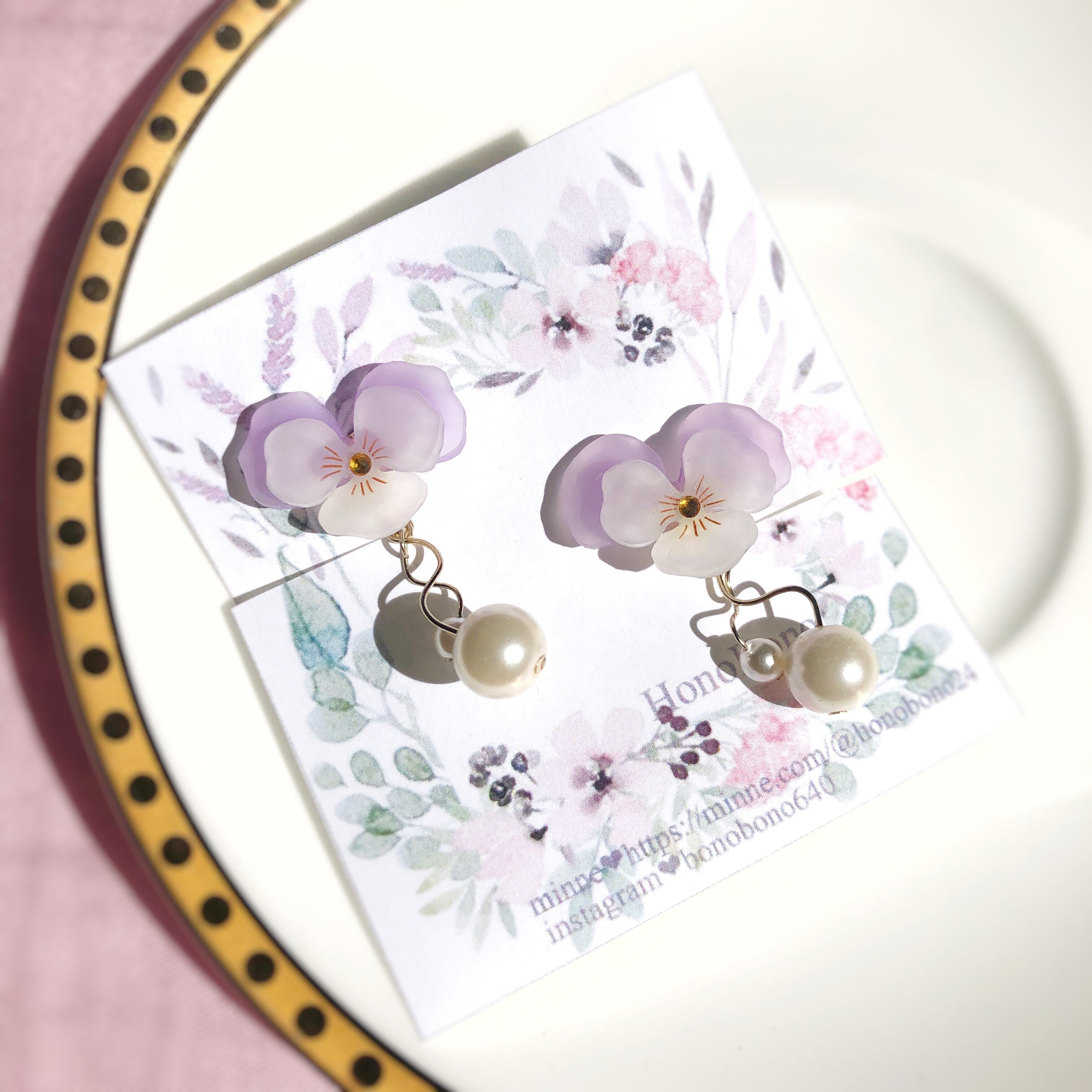 春の季節の花、ビオラをピアス、イヤリングにしました(*^^*)