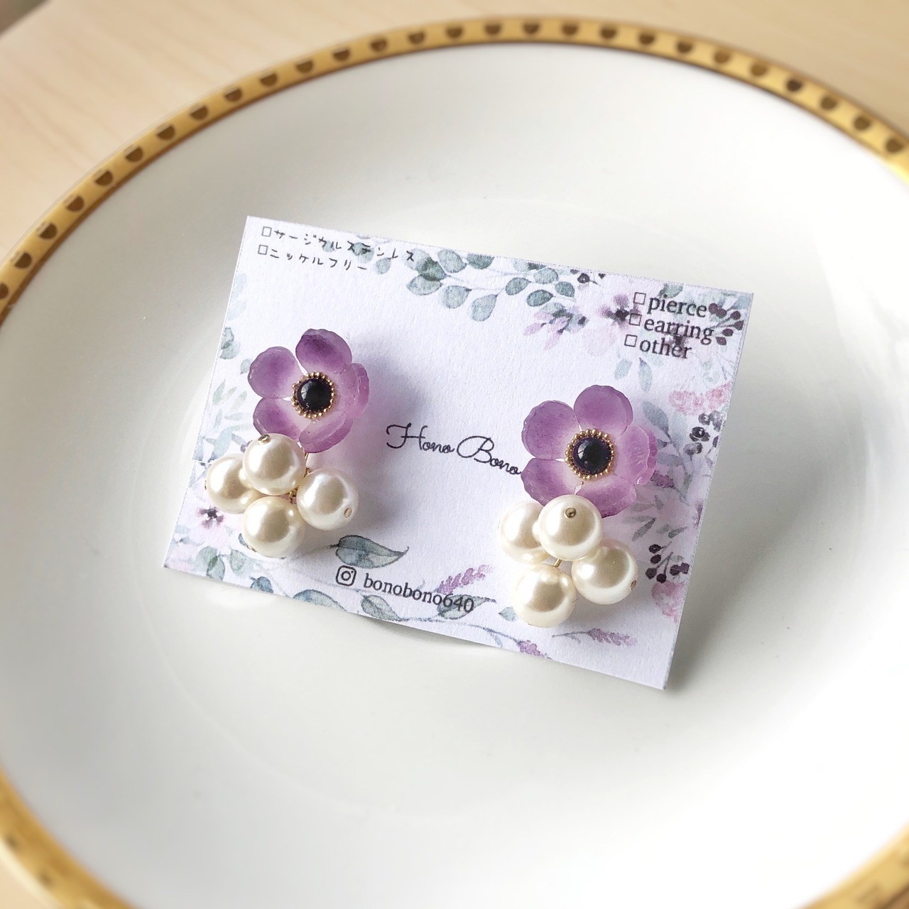 冬の季節の花、アネモネをイヤリング(ピアス)にしました(*^^*)