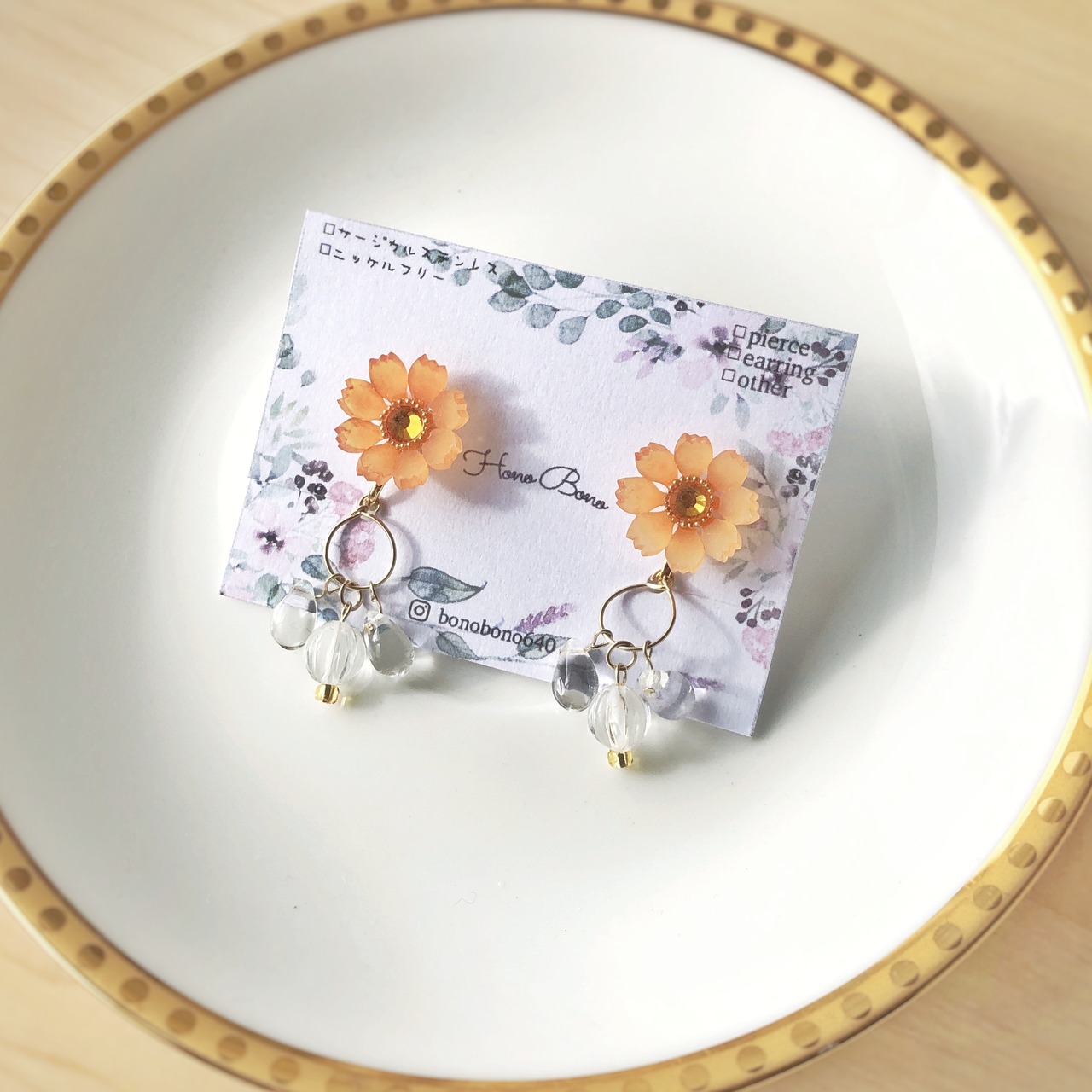秋の花、濃パンクのコスモスのピアス、イヤリングです。