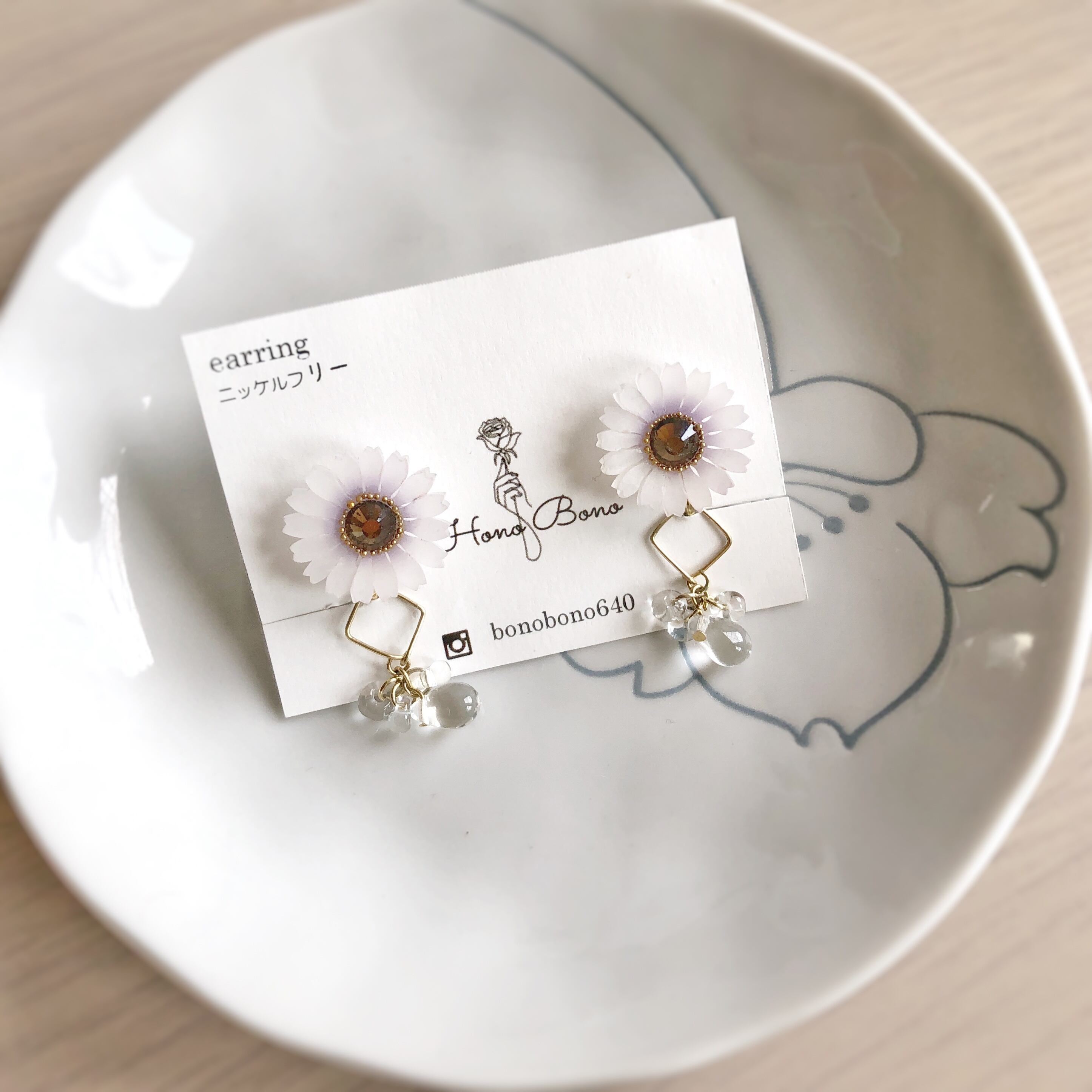 すりガラスのような質感のマーガレットのピアス(イヤリング変更可)です。