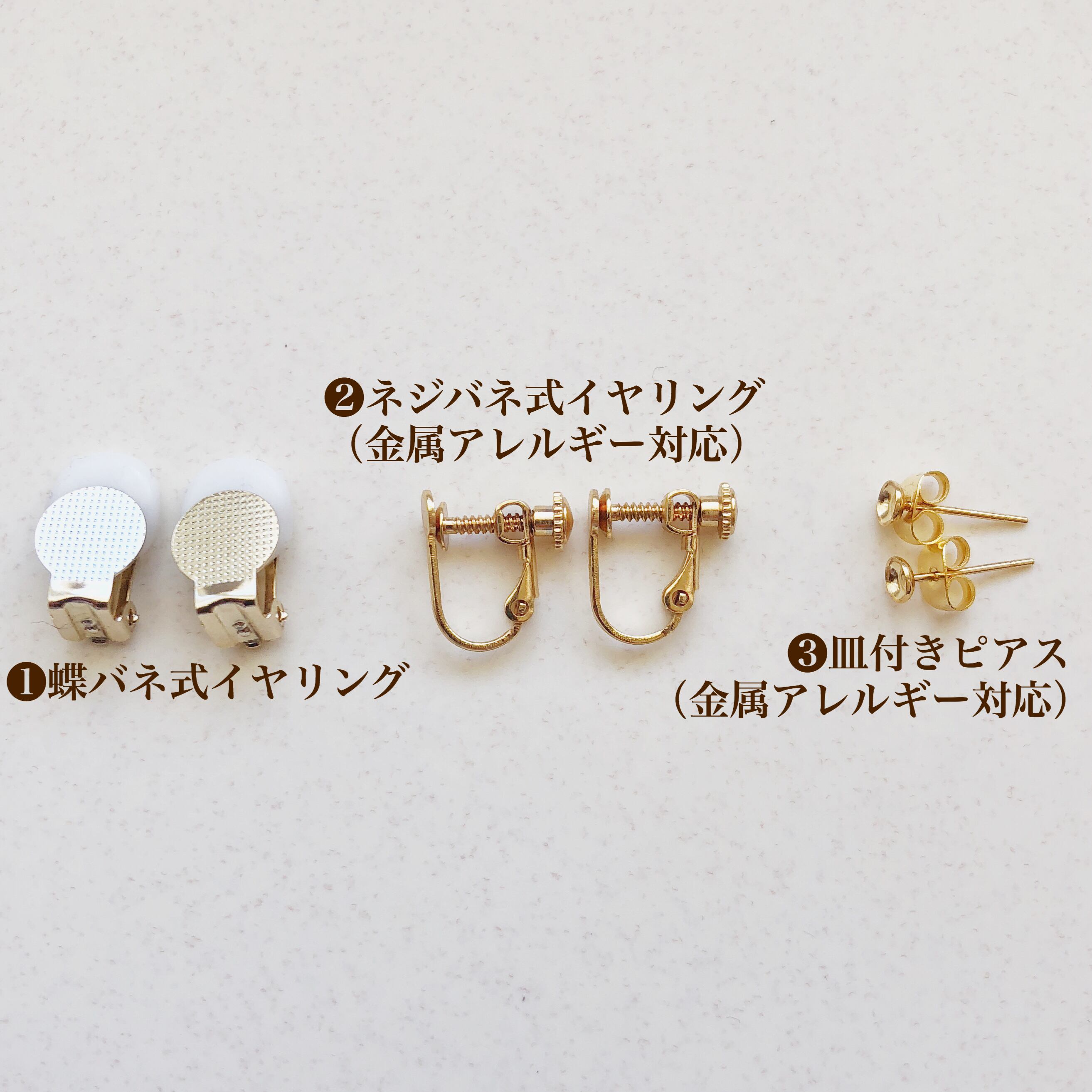※ネジバネイヤリングはニッケルフリー、皿付きピアスはサージカルステンレスとなっており、金属アレルギーに対応しています。